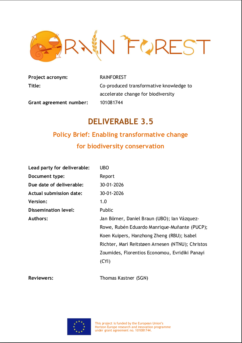 RAINFOREST aims to explore pathways for transformative change to reduce biodiversity impacts of major food and biomass value chains. This includes the