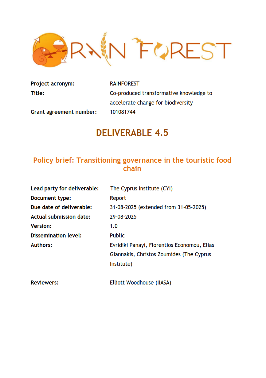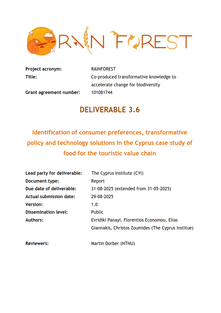 Within this objective, the case study on the food supply chain in Cyprus’s tourism